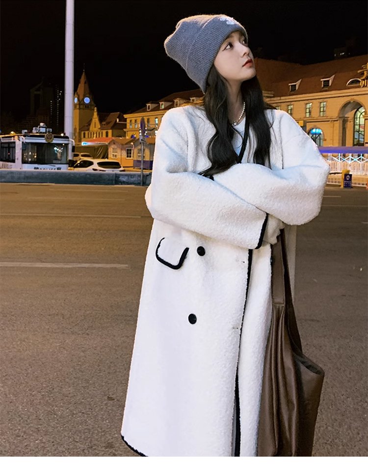 シャネル風ロング丈ラムウールコート