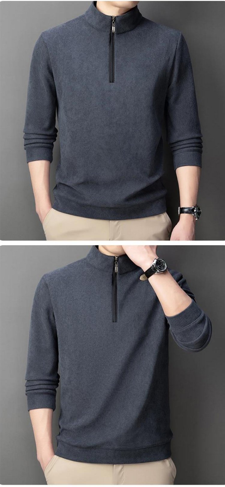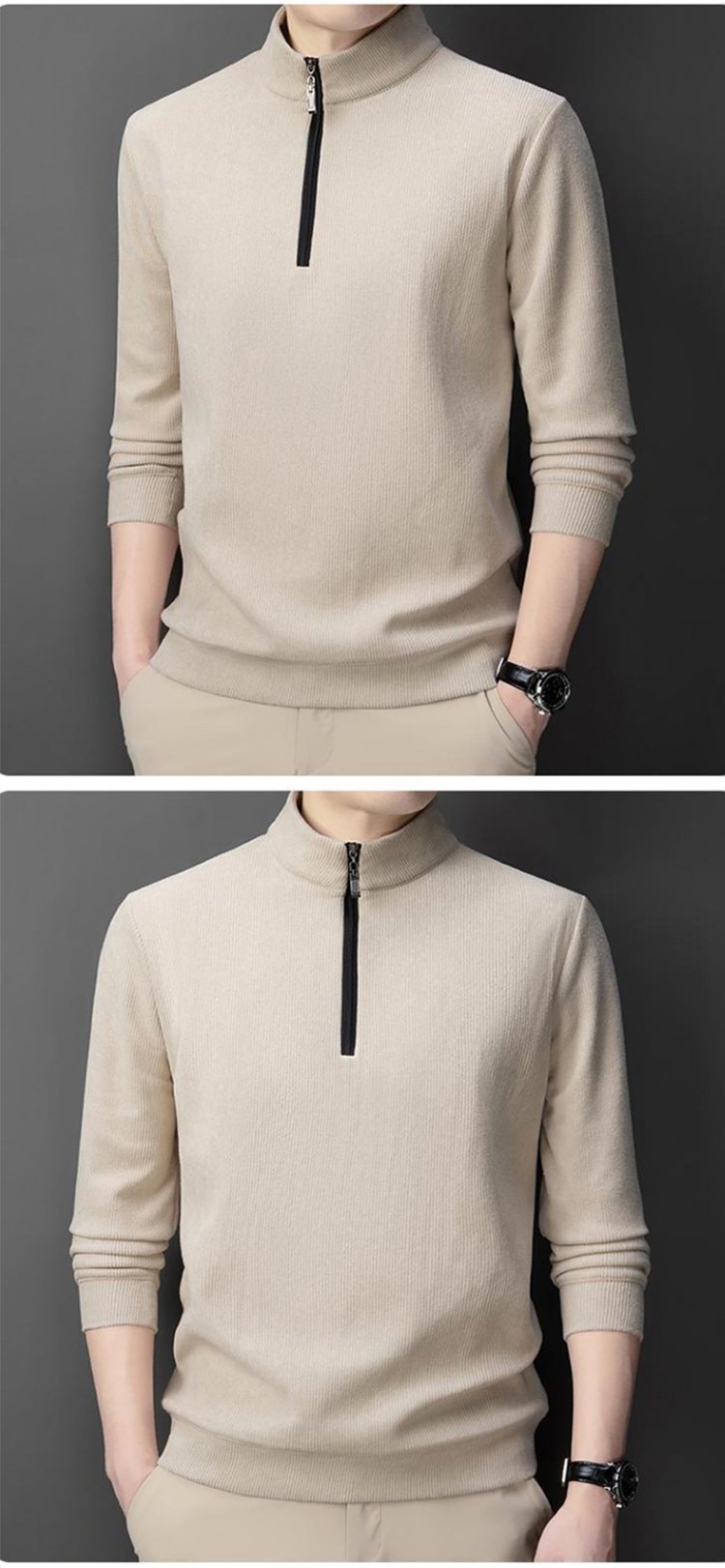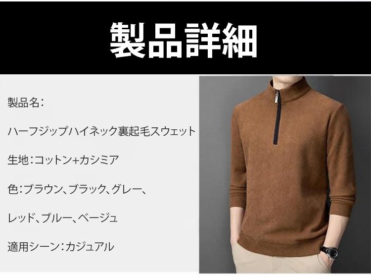 ハーフジップハイネック裏起毛スウェット
